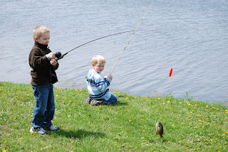 Myles and his big catch. Ryan caught a fish too but I was up at the house so I missed the photo opp.